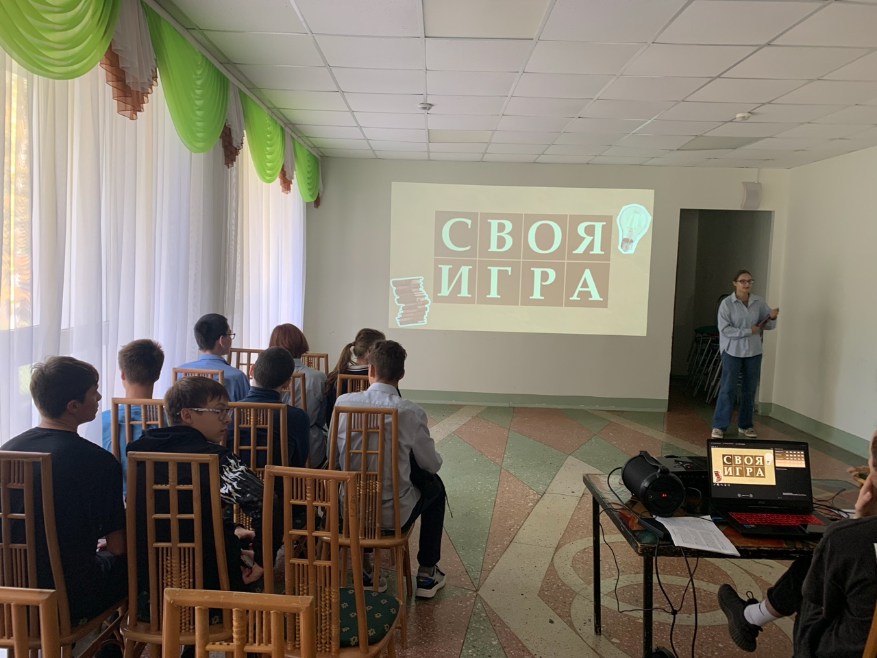 18 сентября ДК » Космос» проводили для наших ребят из 9а и 9б классов интерактивную игру » Своя игра «